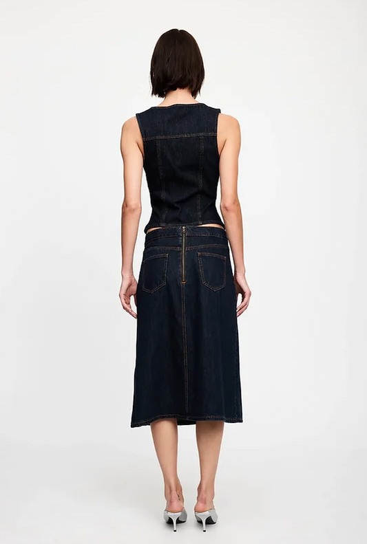 Camelia Midi and Batroun Vest in Dark Denim