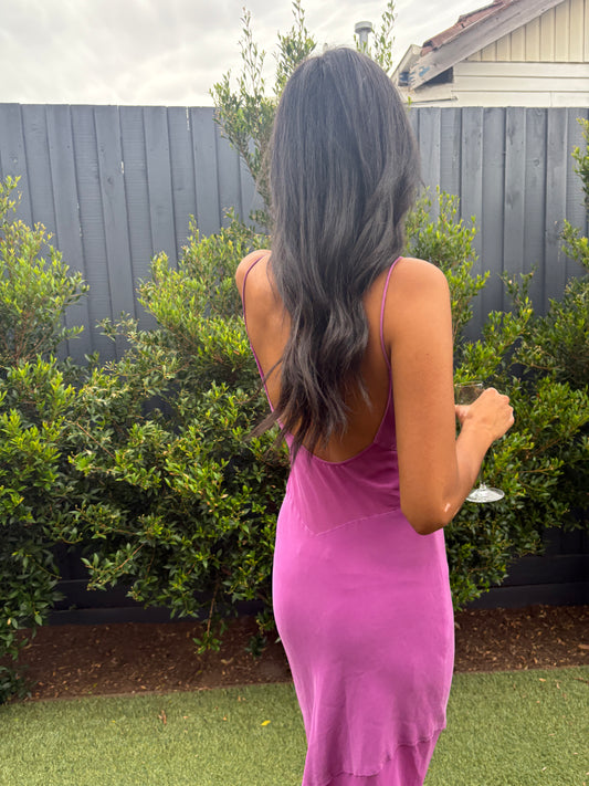 Sheer Panelled Silk Slip Dress in Mulberry