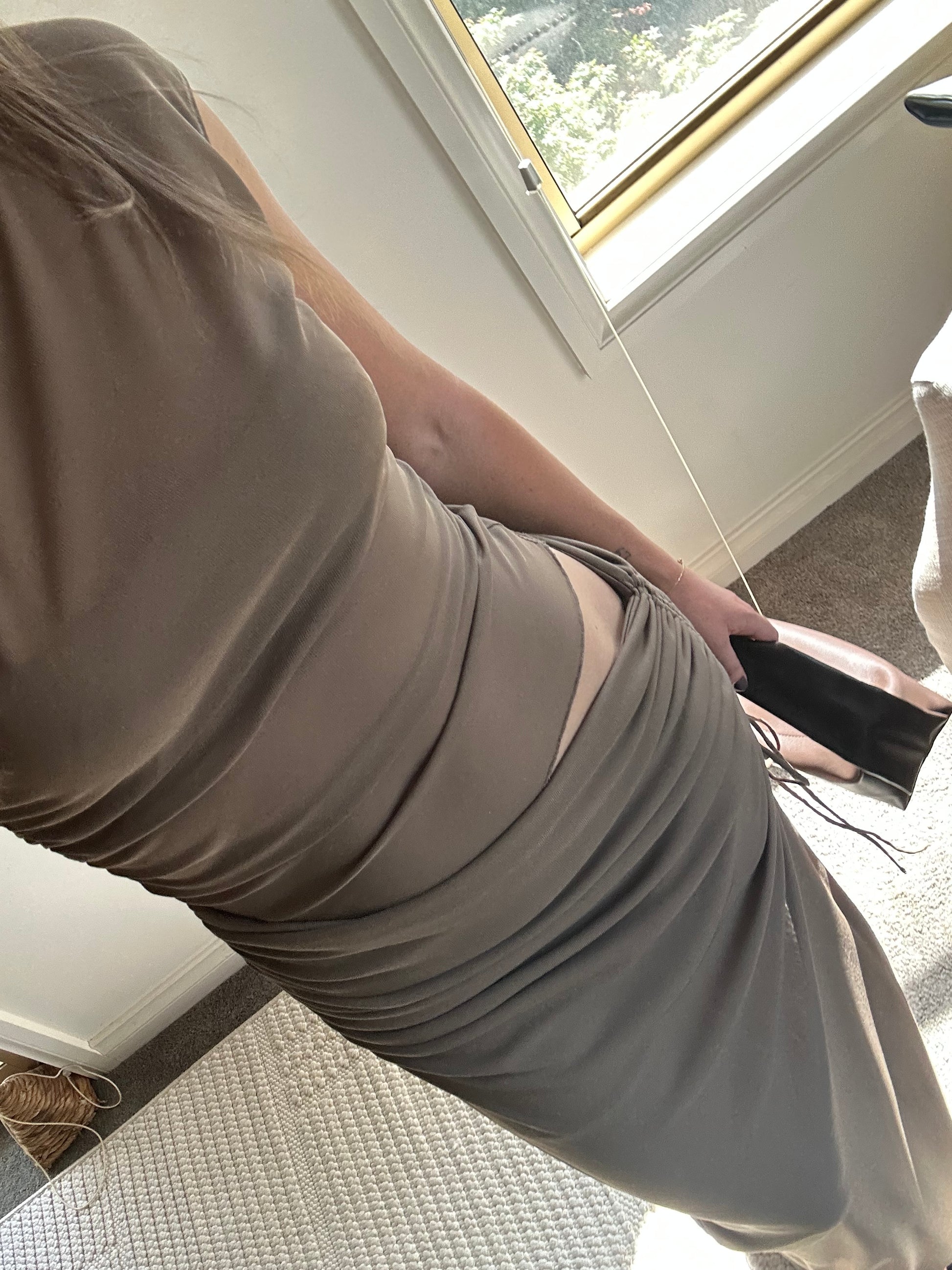 The Milo Maxi Dress is crafted from stretch mesh and features a T-shirt-style bodice with cap sleeves, a grown-on neckline, and a jersey panel at the bust. It transitions into a straight skirt with a side split, which can be adjusted using the drawstring. For added comfort, the skirt is lined with mesh.
